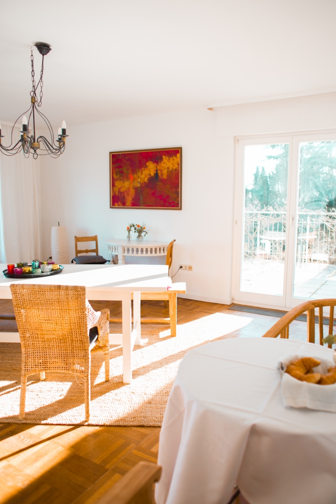 Es ist uns wichtig, dass unsere Gästen die Freiheit haben, sich in einem großen, öffentlichen Gemeinschaftsbereich aufzuhalten. Dazu zählt das Esszimmer, das Kaminzimmer, die untere Lounge, der Balkon, und die Terrassen – vor allem aber der liebevoll gestaltetet Garten.